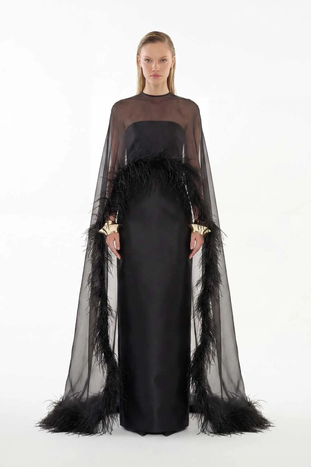 O nosso vestido Alba é confeccionado em zibeline, um tecido que combina leveza e estrutura, proporcionando um caimento impecável. Com decote reto tomara que caia e saia reta com fenda nas costas é a melhor tradução de um design clássico e atemporal, ele apresenta um corte sofisticado que valoriza a silhueta feminina. Perfeito para ocasiões especiais, este vestido é a escolha ideal para quem deseja um visual refinado e minimalista. Complemente com acessórios elegantes e esteja pronta para brilhar no seu evento especial. Peça acompanha capa com detalhe de plumas.