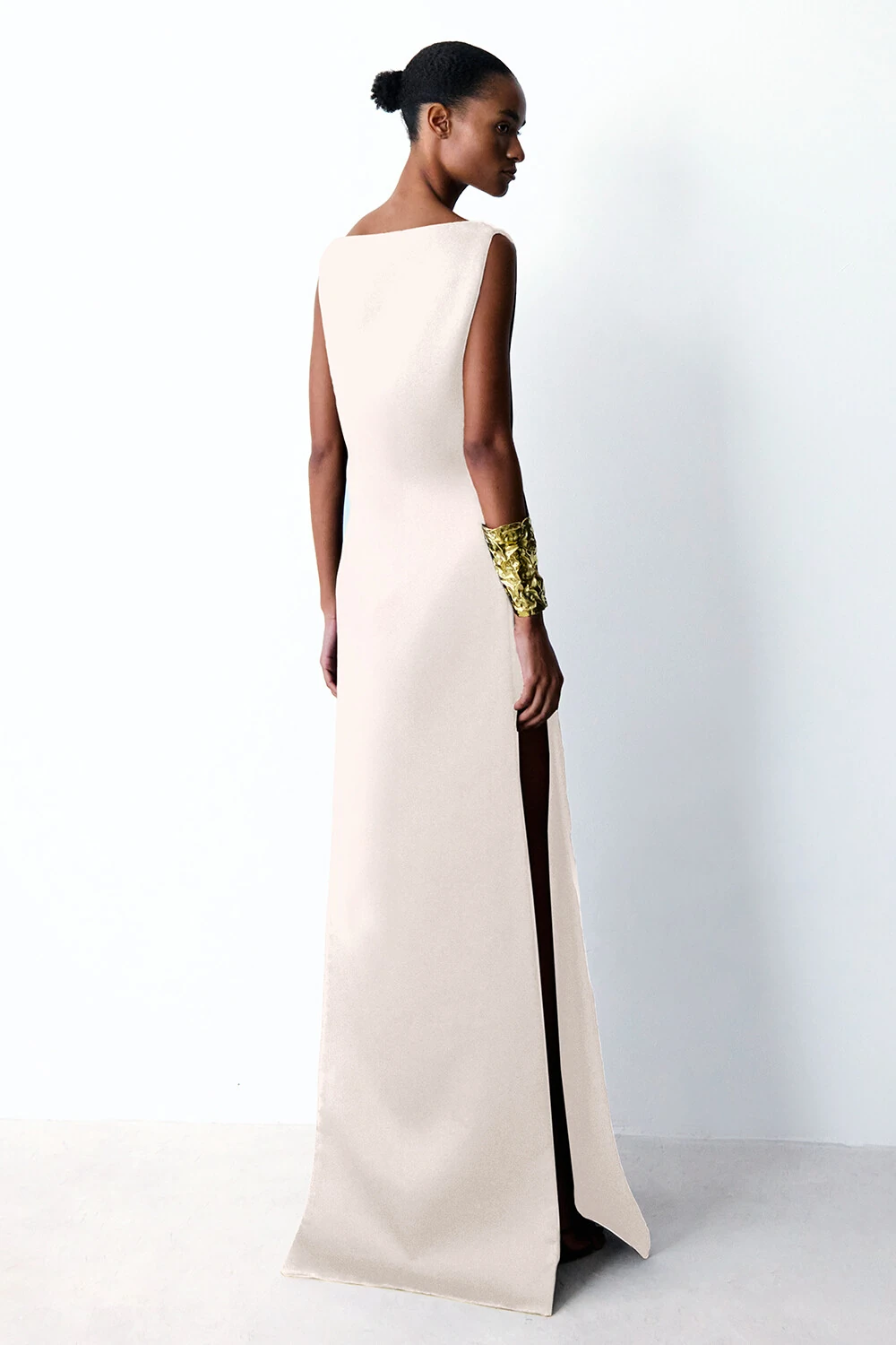 Vestido em crepe com toque super macio, com shape reto e arquitetonico.